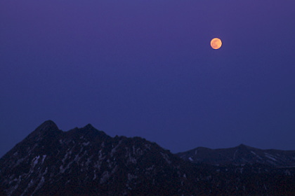 険しい摩周岳から、ミステリアスな月が昇る。