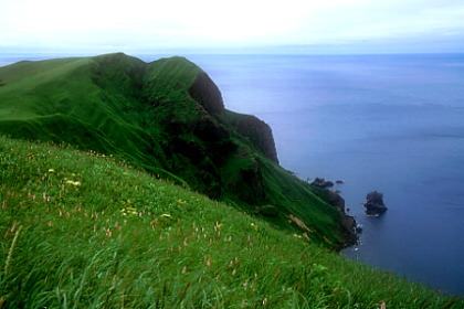 遊歩道を歩いていくと、眼下の海に岩が見える。