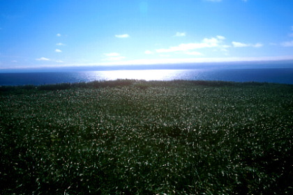 海と草原がキラキラ光る、何ともいえない幸せな風景。