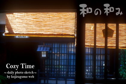 すだれ越しに射し込む光が