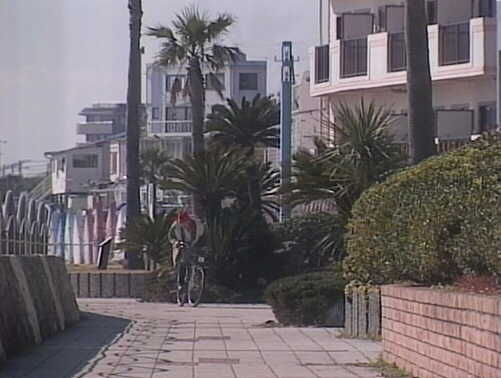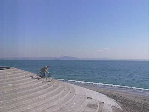 | 第4話(2/7)でハジメが自転車で走っていた海岸 (右はキャプチャー画像)