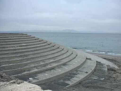 | 第4話(2/7)でハジメが自転車で走っていた海岸のスロープ