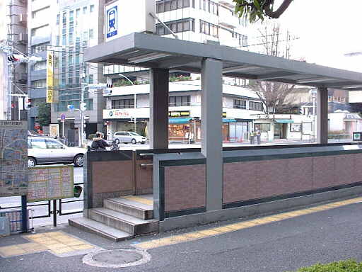 | 第1話(1/18)であさみが登ってきた地下鉄の入り口(歩道側から)