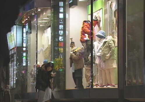 ショーウィンドーの前