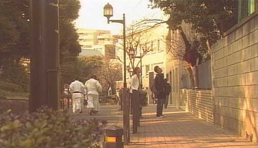 | 第11話、最終話(6/20)で沙絵が卒業式を抜け出して、塀によじ登ってオレンジを取っていたところ