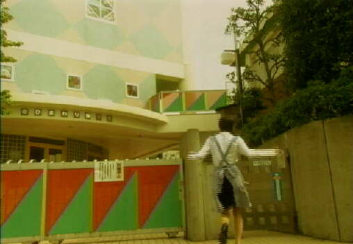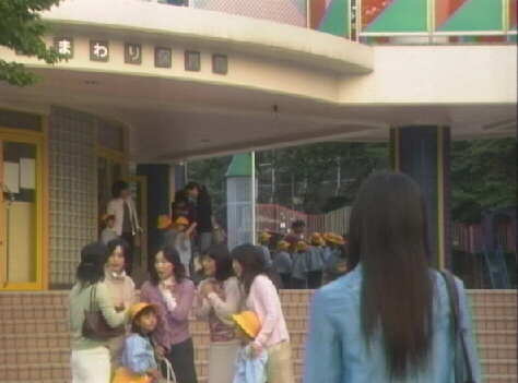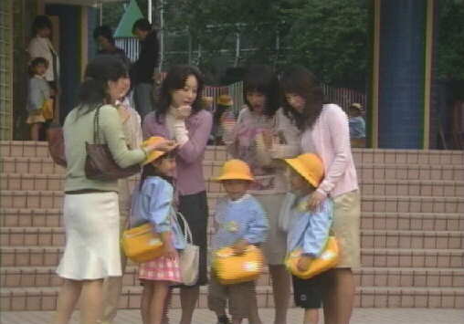 (右はキャプチャー画像、保護者が噂をしている階段)