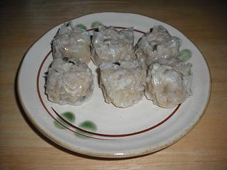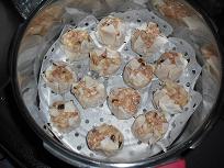 F Dを焼売の皮で包む。 G Fを蒸し器に入れ、