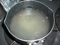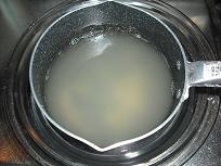 @ 水30mlに粉ゼラチンを A 鍋に水400ml、 B Aに@を入れ、