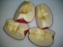 @ 水、砂糖、レモン汁を A リンゴを4等分する。 B Aのリンゴの芯を取る。