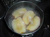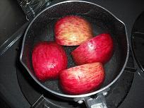 - 火加減が強過ぎるとリンゴが崩れてしまうので、注意しましょう。