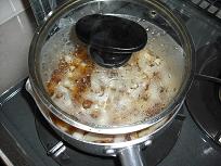 煮る。 煮込む。 ふり、混ぜ合わせて、
