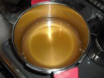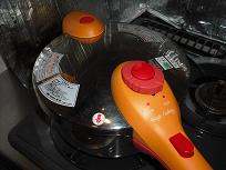 C 蓋をして、強火で圧力を D 玉ねぎをみじん切りに E 鍋にD、挽肉、水、
