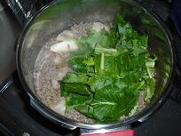葉は、2cm程度の長さに しょうゆ、昆布だしの素 中火で煮る。