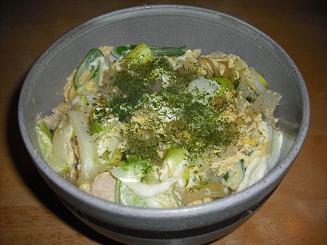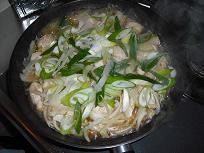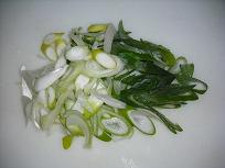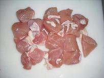 @ 玉ねぎを3mm程度の A ネギを3mm程度の B 鶏肉を3cm角程に切る。