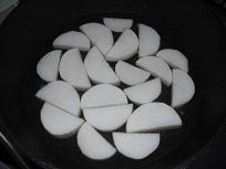 半月切りにする。 ゲソは、3cm程の長さで 昆布だしの素を