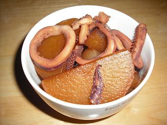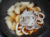 @ 大根を1cm程の厚さで A イカを輪切りにする。 B 鍋に水、鰹だしの素、