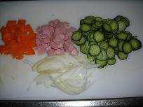 人参は、いちょう切り、 塩水に浸す。
