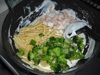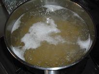 @ マカロニを茹でる。 A 茹でたブロッコリーを B 玉ねぎを千切りに