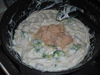 C Bをしんなりするまで D ベシャメルソース、@、 E Dに蟹缶一缶まるごと