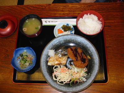 日替わり定食 700円 (さば塩焼き、牛ミンチコロッケ、サラダ、味噌汁、ご飯)