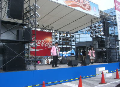 | 特設スタジオでピンチーズの歌謡ショーを見入っている人々。 | 特設スタジオで歌謡ショー 舞台では門馬良さんによる司会で進められていた。 | |