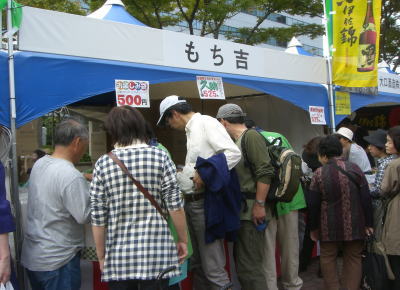 | 業者による出店ゾーン。試食もたくさんあり楽しみました。 | 今年も、試食に誘われ500円の詰め合わせを買いました。 | |