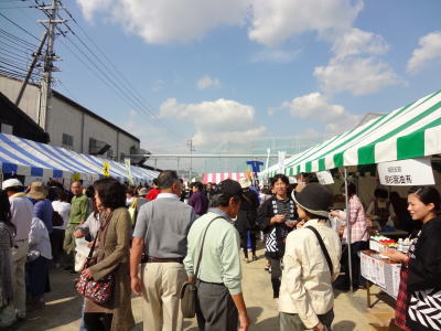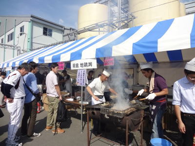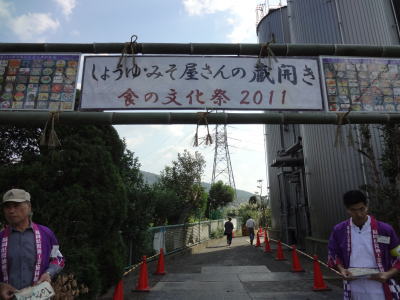 | しょうゆ・みそ屋さんの蔵開き会場入り口 | 会場には福岡県内30社程の醤油醸造会社が店頭販売。 | |