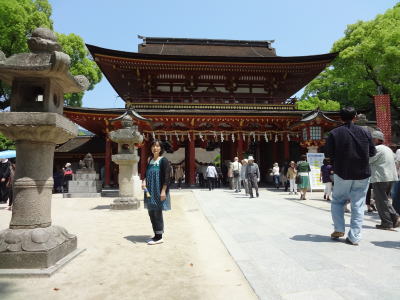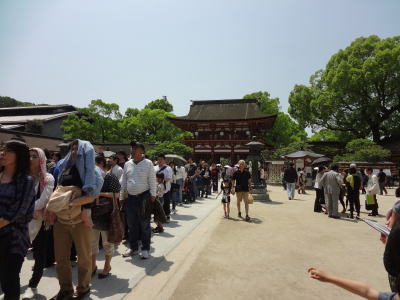 | 太宰府天満宮櫻門前で | たくさんの人が参拝に訪れており、参拝するための行列も出来ている | |