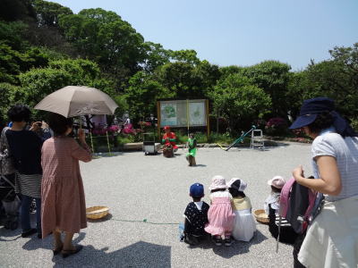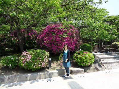 | 大宰府遊園地前の広場、猿回しが行われていた | 大宰府遊園地前の広場、つつじをバックに記念撮影 | |
