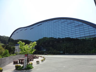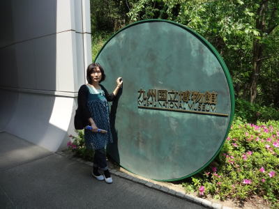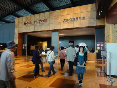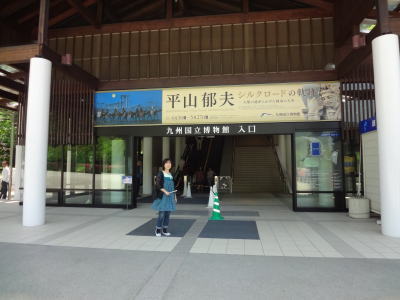 | 博物館4階、文化交流展示施設ではアジア展が | 九州国立博物館記念碑の前で | |