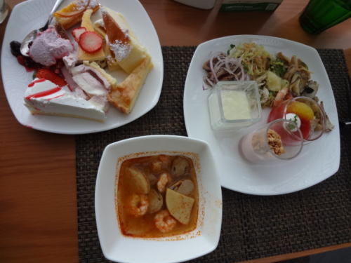 | メニューはイクラ丼、鯛の洋食、アサリ料理など | トムヤンクン、ケーキ類、など | |