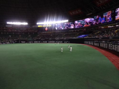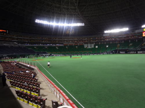 | 8番ゲートより入場直後、練習風景を見入るため1塁側内野席方面へ直行 | 座席を確保したため試合前ドーム内をぶらり散歩 | |