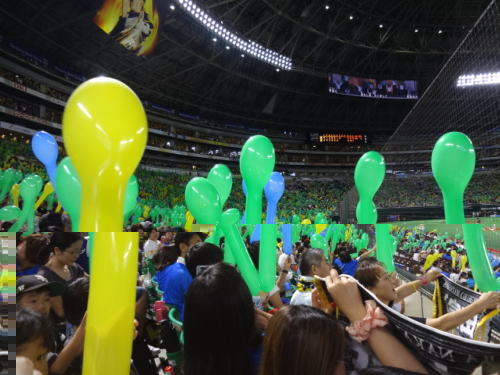 | 練習中 | 試合開始直前、オーロラビジョンには観客席が映し出されている | |