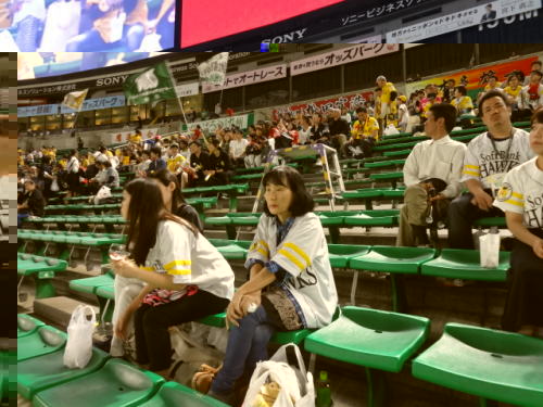 | 一塁側外野席32通路の4列より外野席の風景 | 7回裏ソフトバンクの応援 | |