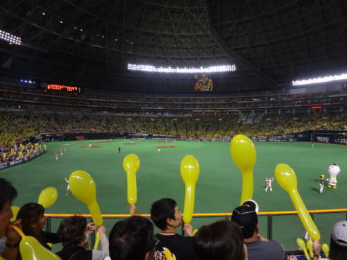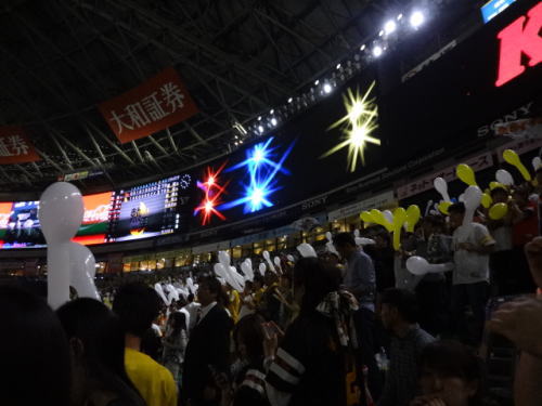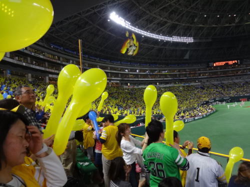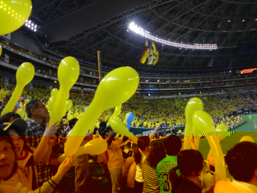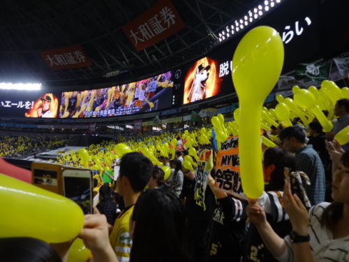| 応援も絶好調 | 内野席方面も黄色の風船で埋まっている | |