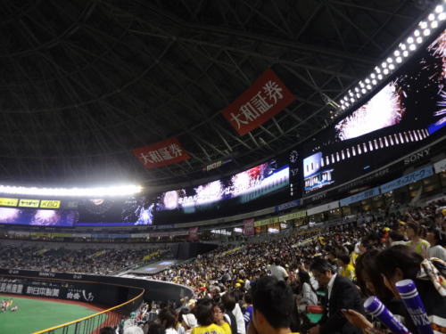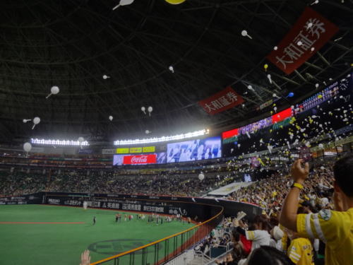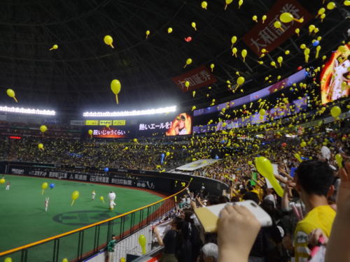 | 試合も最終回で決着がつく瞬間 | 試合は2対1でソフトバンクの勝ち。勝利の風船が解き離れる直前。 | |