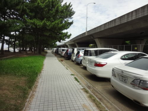 | ドームにPm1時30分ごろ到着。駐車場は満杯で、入るために30分以上待った | 球場に入場するための時間調節のため、折りたたみいすで休憩 | |