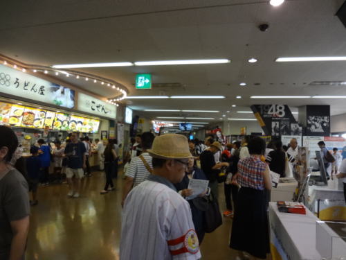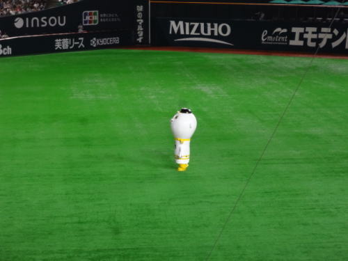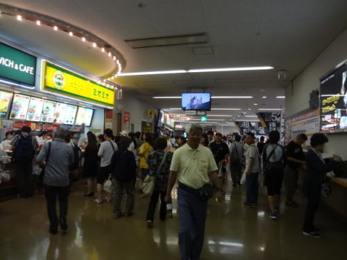| 試合開始前のエンターテインメントでふーさん登場。人がはいいているのかどうか今も謎である | 試合開始前(PM5:20)の通路。金曜日であるが人がいっぱい | |