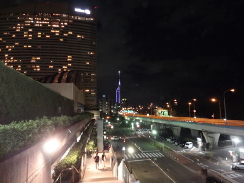 | PM8時30分ごろ帰宅途中。バックに見えるものはダックアウトとヒルトンホテル | 福岡ドーム裏方面の道路。右に見えるのが都市高速、奥に見えるのが福岡タワー | |