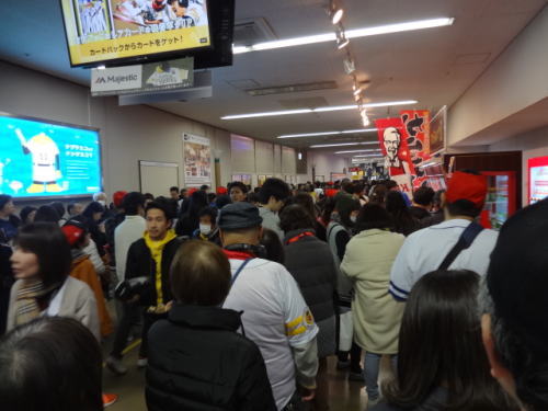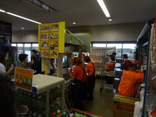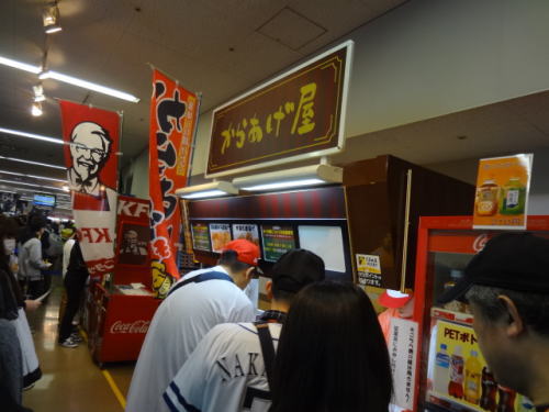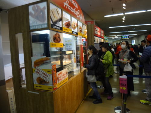 | 売店は会場内ではすでにオープンしていた。最初にゲットしたのはケンタッキー | 2番目にゲットしたのが松田弁当と九州味めぐり弁当をゲット、弁当をゲットするのに 30分以上並んだ |