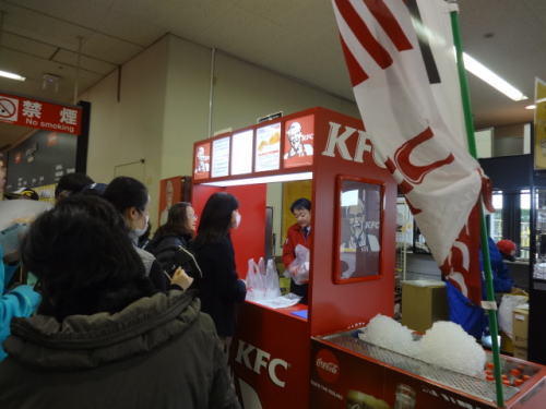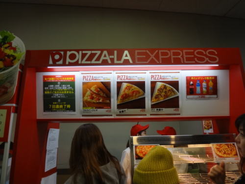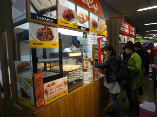 | ピザ屋さんでピザをゲットするも12時過ぎになると商品が無くなり待たされることが多くなり | ピザ屋さんの横でから揚げをゲット | |
