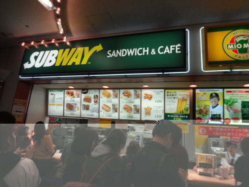 | 別のホークスカフェではサンドイッチを | 10時30分ごろの通路、並んでいる人と歩いている人で大混雑 | |