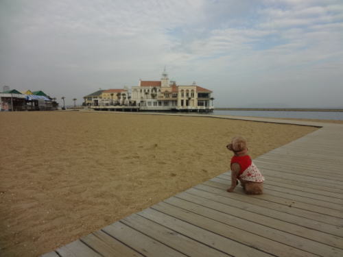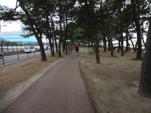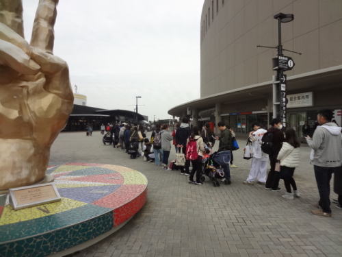 | 福岡タワーそばの駐車場の停め、散歩は結婚式場などのある浜辺で行いました | Am8:50頃のドーム周り、会員用入場ゲートには80人ほどが並んでいる | |