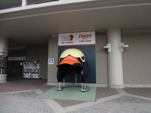 | 暖手の広場 | ホークスが九州へ来て30周年を記念して初代の鷹ヘルメットが飾られている | |
