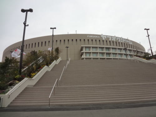 | ホークスタウン跡地にできた「マークイズ福岡ももち」163のテナントが入っている | 階段下より福岡ドームを望む | |