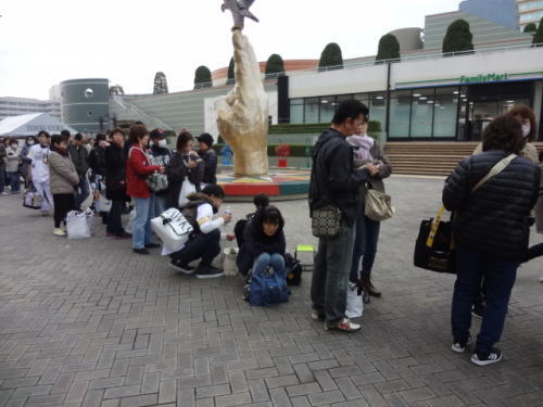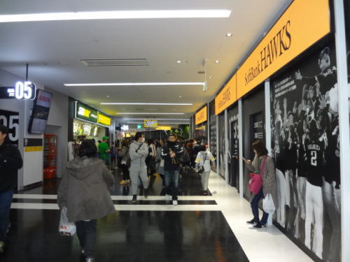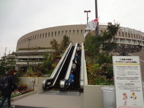 | 唐人町方面からドームに来た場合にはエスカレータが設置されていた | Am10:30の入場までに1時間ほどあり。少し風があり寒かった | |