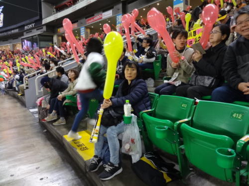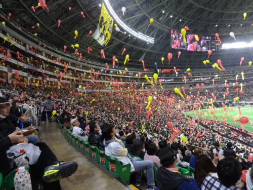 | 7回裏ラッキーセブンの応援開始直前 | 黄色の風船をもってラッキーセブンの応援に備えています | |