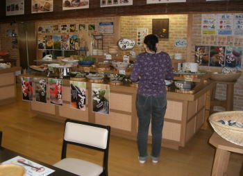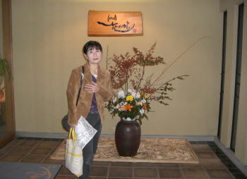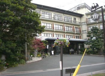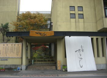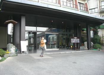| ”川の宿 花いやし”正面玄関 | 花いやし旅館 玄関入り口にて |