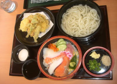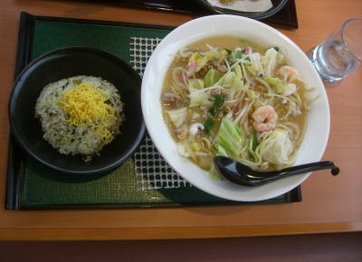 | 宮原サービスエリアでの食事(ちゃんぽんとたかなご飯) | 宮原サービスエリアでの食事(海鮮丼セット) |