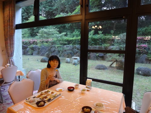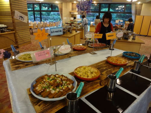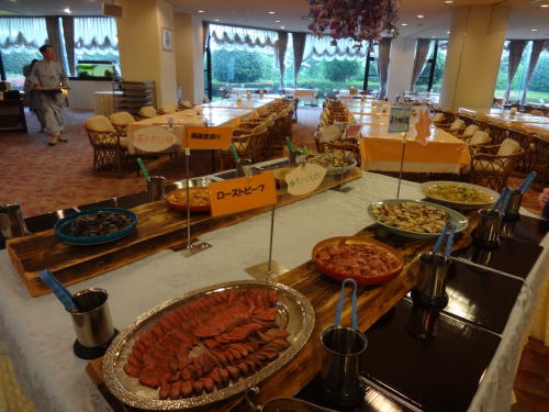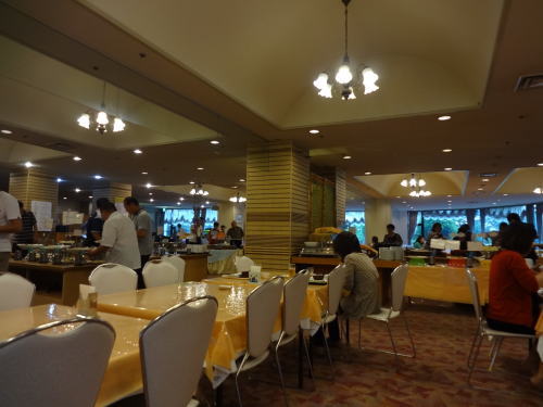 | ホテル東館のロビー 主に結婚式場として使われている模様。 | 夕食会場 バイキング形式で | |